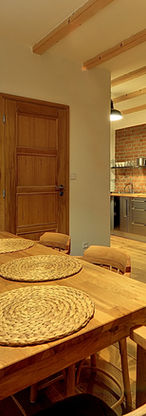 We offer two "mirror" identical apartments, which are furnished in a modern style. Each apartment has a capacity of four beds, has its own bathroom and toilet. The kitchen and dining room are common to both apartments. In each of the living rooms there is a leather sofa and armchairs, from where you can watch TV with Czech and German programs. For more demanding viewers, we can offer watching movies via USB on TV. There is also a serving table with an electric kettle, free tea and coffee. From each apartment you can go directly to the garden through French windows. In the bedrooms you will find two double beds, with the possibility of an extra bed. Blankets are provided for added comfort. Bed linen is a matter of course. There is a sufficient amount of storage space in the accommodation area. Toilets, the toilets are separate from the bathrooms. The bathrooms come with towels, soap, shampoo and ionic hairdryer. The bathrooms are equipped with a shower. The floor has a very pleasant underfloor heating. For food preparation we offer a fully equipped shared kitchen with dining area. The dining room can be used as a common room. The kitchen offers a convection oven, ceramic hob, microwave and fridge-freezer. All dishes are designed for eight or more people and you will find everything you need to prepare full meals or celebrations. There is also a ski storage room in the common areas. The accommodation facility has 6 parking spaces. The new building is modernly designed and with its layout and interior equipment corresponds to current trends. The surroundings of the apartments are very quiet. You can watch the local fauna and flora from the window or the garden. Nevertheless, the accommodation facility has very good access to all services in the village (ski lift 150m, 4 restaurants up to 400m, forest 250m).